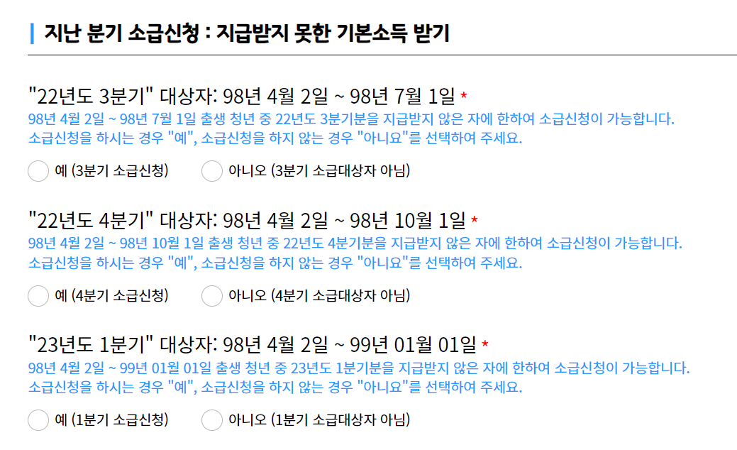 | 2분기 | '23.04.01. | '98.04.02. ~ '99.04.01. | '23.06.01. ~ 06.30. | '23.06.14. ~ 07.10. | 07.20. |