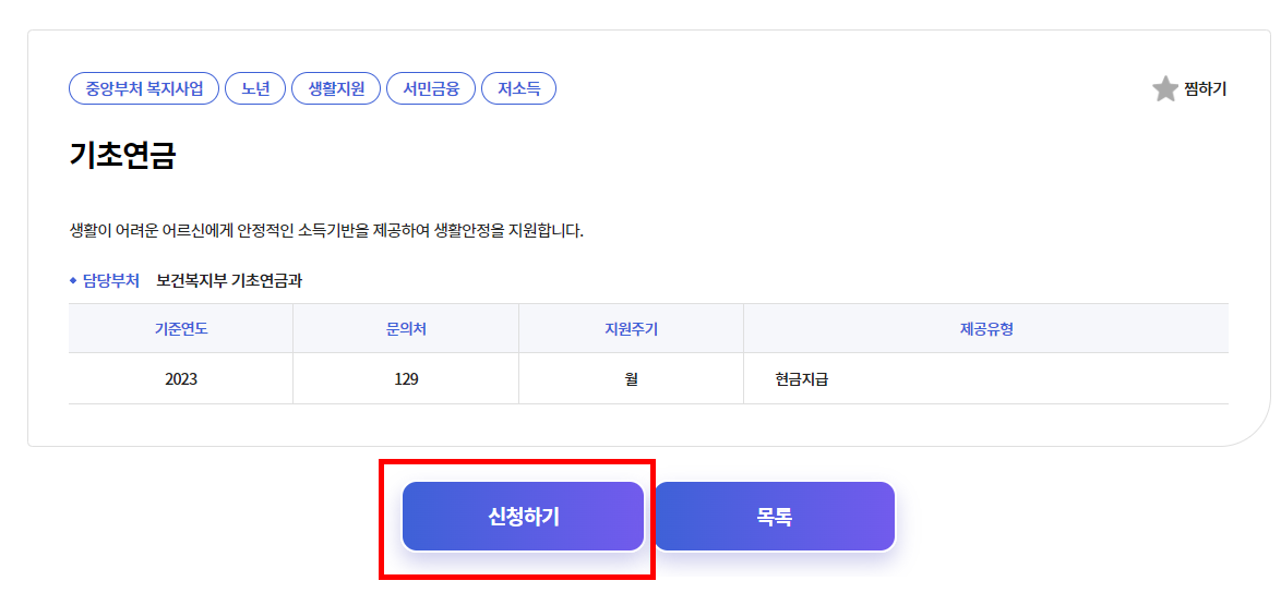 기초연금 신청하는 홈페이지에 접속하신 후 신청하기를 누르시면 됩니다. 기초연금 수급자격을 제대로 확인하지 않고 신청할 시 불이익을 받을 수 있으니, 반드시 수급자격 확인 바랍니다.